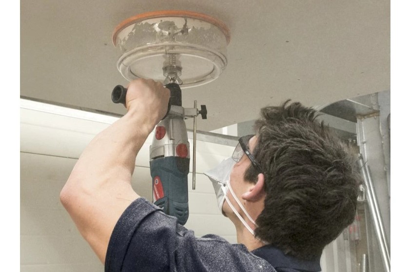 - Použijte kruhovou pilu nebo speciální nůž na řezání sádrokartonu. Otvory musí být precizní, aby světla dobře zapadla.